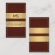 Stitched Brown Leather Gold Metallic Bars Business Card