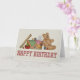 Lots of tools for sewers and stitchers, with a cute teddybear guarding them, underneath "Happy Birthday" in cross stitch font. A perfect birthday card for needle workers! Customize the inside with your personal message.