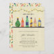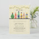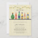 Stock le bar wedding shower invitations comprend alcool d'aquarelle et bouteilles de vin sur une étagère avec des lampes à cordes suspendues au-dessus et motif de bouteille festive au dos. (art original par Shelley Winters Design)
