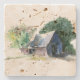 Barn is nestled among the green trees. Watercolor of a rural barn among the trees. Print of original watercolor done by John A. Muir.