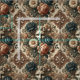 Stone Faces & Tired Nights rests in the quiet ache of remembrance. A weathered visage emerges from brocade and bloom, half-asleep beneath midnight roses and sepia decay. Time has worn its name away, but not its sorrow. Perfect for drapery, upholstery, or garments that carry the weight of forgotten lullabies.