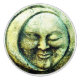 Smiling sun and framed by a crescent moon. Done in a stone look in colours of green, gold, bronze and black.