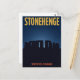 Capture the mystery of this ancient monument with this dramatic, vintage-style travel postcard for STONEHENGE. The illustration features the famous ring of standing stones in Wiltshire, England, silhouetted against a beautiful, deep blue, starry night sky. This powerful, minimalist design is perfect for history buffs, archaeology enthusiasts, or anyone sending a unique greeting from this iconic UNESCO World Heritage site.