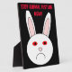 This awesome plaque features the sad face of a white rabbit. This rabbit has a big frown on its face because it is a lab rabbit that has had cosmetics tested on it. The whites of its eyes are red and swollen. The design has been created to bring to attention the unnecessary suffering caused by the testing of cosmetics on animals.