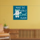 This poster features a cartoon white polar bear with a light blue swim ring and cap, willing to raise awareness about climate change and global warming. The caption reads "make the world cool again".