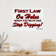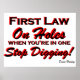 First law on holes – when you're in one, stop digging! Denis Healey quote on poster.