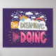 Cute colourful "Stop Dreaming Start Doing" quote with rainbows, stars and unicorn head.