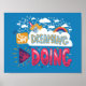 Cute colourful "Stop Dreaming Start Doing" quote with rainbows, stars and unicorn head.