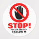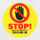 Help keep others off touching your belongings with this graphic, red, white, yellow and black named STOP! hands-off warning symbol stickers. Reads STOP property of and customize with three of your own names or company names. Perfect for school, college, work, and other places where your property could be accidentally touched or mixed up or stolen. Ideal to keep safe, reduce germ risks and theft. Designed exclusively by Sarah Trett for www.mylittleeden.com