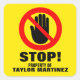 Stop Hands off warning yellow custom name id Square Sticker