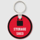 Here is a great way to keep your storage shed keys organized and easier to find. Red, white and black graphic art design features a unlocked padlock. Text message can easily be changed to read garden shed, boat lock, bike lock, summer rental, garage key, gate key, or other handy message.