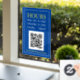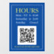 Store Hours Open Sign, QR Code, Dk Blue Yel White Window Cling