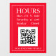 Store Hours Open Sign, QR Code, Red & White Window Cling