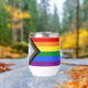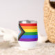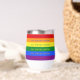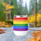 This wine tumbler features the intersectional pride flag colors of red, orange, yellow, green, blue and purple, along with black, brown, lt blue, lt pink and white, to include people of colour and transgender people. On top is the slogan 'our stories matter'. You can customise every element of this design, from text to colours, in the Zazzle design tool. 🏳️🌈 For more pride gifts, visit my store Zazzle.com/JessicaAmberArtist 🏳️🌈 For custom orders, message me on Zazzle