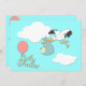 Celebrate your baby shower with this colourful and cute baby shower invitation which has a cartoon of a stork carrying a baby and a pink balloon floating by with the words "baby shower". Easily customize with your party details.