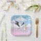 Stork Carrying a Baby Cloudy Sky Paper Plate