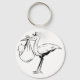 This design is a stork holding a baby. The stork has the baby in a blanket and is holding it in its beak. This stork holding a baby design looks great on this Keychain