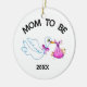 Mom to be design with a stork carrying a baby in a pink blanket.
