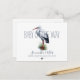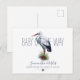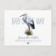 A lovely stork illustration pregnancy announcement saying baby is on the way, with soft blue grey whimsical typography; for a simple whimsical gender neutral announcement. Add your names and due date.