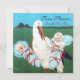 Elegant, funny ,vibrant design for twins: baby boys with a fancy stork in the green field ,nature under the blue sky ,re-elaborated from vintage.