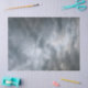 Dark stormy clouds are breaking apart in the foreground of this colour photograph. The cloud layers become lighter shades of grey deeper into the image. Hints of light blue sky are visible beyond the storm clouds as the weather starts to clear up.
