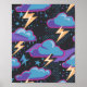 Storm Clouds, Lightning Bolts, and Stars Pattern Poster