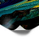 A.I .created print of surreal storm clouds illuminated as they roll across a celestial night sky of stars, moon and planets above a landscape of vibrant mountains and rolling hills