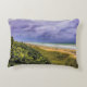 This Accent Pillow features an original photograph by ZoeSPEAK, of Jupiter Beach on a stormy day. The land and seascape is a long view of the sand and ocean from the high dunes covered in sea grape bushes. The lavender blue grey sky is filled with threatening but beautiful dark clouds. In the distance, there is a pier extending into the water.