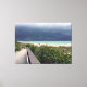 In the original photograph by ZoeSPEAK on this Canvas Print, storm clouds darken the sky over the aqua waters of the Gulf of Mexico as a rainstorm approaches the almost empty beach. A few stragglers head for the walkway through the sea grapes and other greenery along the shore.