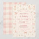A sweet and whimsical birthday design featuring charming silly goose illustrations, soft florals, and delicate bow accents in a warm blush palette. The arched layout adds a vintage storybook feel, creating a soft and timeless look that’s perfect for a first birthday celebration.