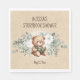 Bring your baby shower table to life with these adorable Storybook Shower Paper Napkins. Featuring a sweet teddy bear reading a book, surrounded by soft watercolor greenery and florals, this design perfectly complements woodland or storybook-themed celebrations. The neutral parchment-style background adds a rustic yet elegant touch, while the personalized text makes these napkins both decorative and memorable. Ideal for baby showers, dessert tables, or tea parties celebrating your little one’s first chapter.