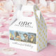 A delightful storybook-inspired birthday favor box featuring classic Where the Wild Things Are illustrations that bring imagination to life. The design highlights Max’s adventurous journey with playful Wild Things dancing across the top and a cozy nighttime scene below, creating a full storytelling moment. The centerpiece text “one for the books” is styled in soft, colorful lettering, adding a charming and celebratory touch perfect for a first birthday. Set against a clean, neutral background, the detailed artwork stands out beautifully while elegant typography keeps the overall look modern and balanced. This whimsical design captures the magic of childhood, adventure, and a little wild fun, making it perfect for celebrating a memorable first birthday.