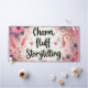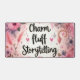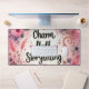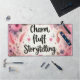 Introduce a touch of charm to any writer's workspace with this pink, sparkling desk mat. Complementing this mat are a matching notebook and business card. The cheerful artwork is designed to inspire your next literary creation. The desk mat features the encouraging phrase "sparkle charm storytelling". This desk mat makes an ideal, thoughtful gift for creative writers. (AI image by Susang6)