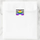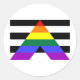 The V rainbow represents the A in the word activism, and the rainbow colours represent the gay pride flag. The black and white stripes represent heterosexuality.