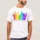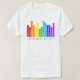 A retro style graphic equalizer design, sporting the colours of the rainbow. The back has a small rainbow between the shoulders, the trademark of Straight RNBW.