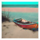 AI generated red boat on a sandy beach with turquoise waters poster.