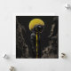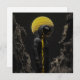 An astronaut stands in a rugged, rocky landscape illuminated by a glowing yellow line running down the front of their suit. Behind the figure, a large, yellow celestial body casts a dramatic contrast against the dark background.