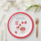 In summery style, these paper plates picture delicious red strawberries in striped bowls, with a green leaf on top of each one, served with traditional cream. Bringing a colourful and fresh touch to your table, the paper plates can be personalized with your family name or other text. Ideal for birthdays, garden parties, summer fétes and barbecues.