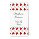A custom canning or soap label with custom script lettersin two sizes and a retro pattern of red strawberries and white strawberry flowers. Click Customize It to change fonts, sizing and more.