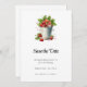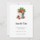 Save the date card with a summery graphic of a bunch of strawberries overflowing in a bucket.