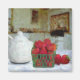 Plump ripe strawberries sit ready to eat. The original is a miniature oil painting by Kathie Miller