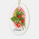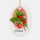 This oval keepsake ornament has a very real looking vintage strawberry image on the front. I have used a red and white checked gingham background behind the strawberries to set of the redness of the berries and the beautifully shaded green leaves. The gingham oval fades at the edges for a country rustic look. The name on the front can be changed. On the back is text which says, "I love you berry much." and the name of the gift giver. You can also change this text.