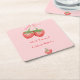 STRAWBERRIES PINK BOW BIRTHDAY SQUARE PAPER COASTER