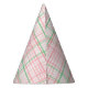 Charming party hat with pastel plaid print and customizable text. Pretty berry first party.