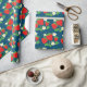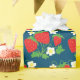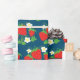 Strawberry and Flowers Pattern Blue Wrapping Paper