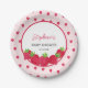 This baby shower paper plate is decorated with watercolor strawberries and stylish script typography.