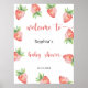 Cute baby shower invitation card featuring watercolor illustration of strawberries. The text says "a berry sweet baby is on the way." Matching items available.