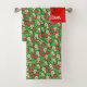Strawberry leaves, fruits and flowers. Seamless pattern. Custom text on each towel.