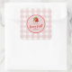 Strawberry Berry First 1st Birthday Pink Gingham Square Sticker