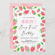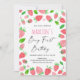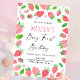 This adorable invitation features hand painted watercolor strawberries and greenery.